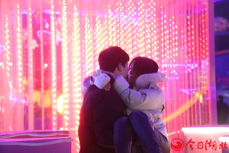 本网讯,2月14日晚,欢乐谷情人节变身恋爱星球,环游宇宙的心动机器人正在收集甜蜜爱能量,10对情侣在TA的注视下牵起爱人的手吻住......