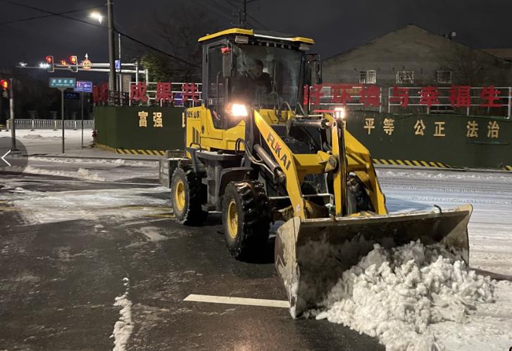 湖北荆州:彻夜奋战城管部门铲雪除冰保畅通