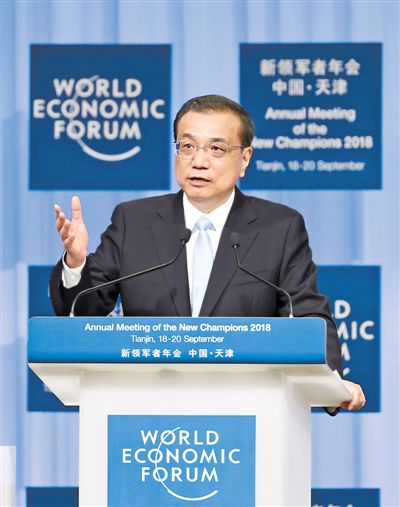 9月19日,国务院总理李克强在天津梅江会展中心出席2018年夏季达沃斯论坛开幕式并发表特别致辞。 新华社记者丁海涛摄 本报天......