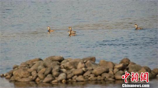 稀有鸟类中华秋沙鸭徙栖湖北宜都越冬