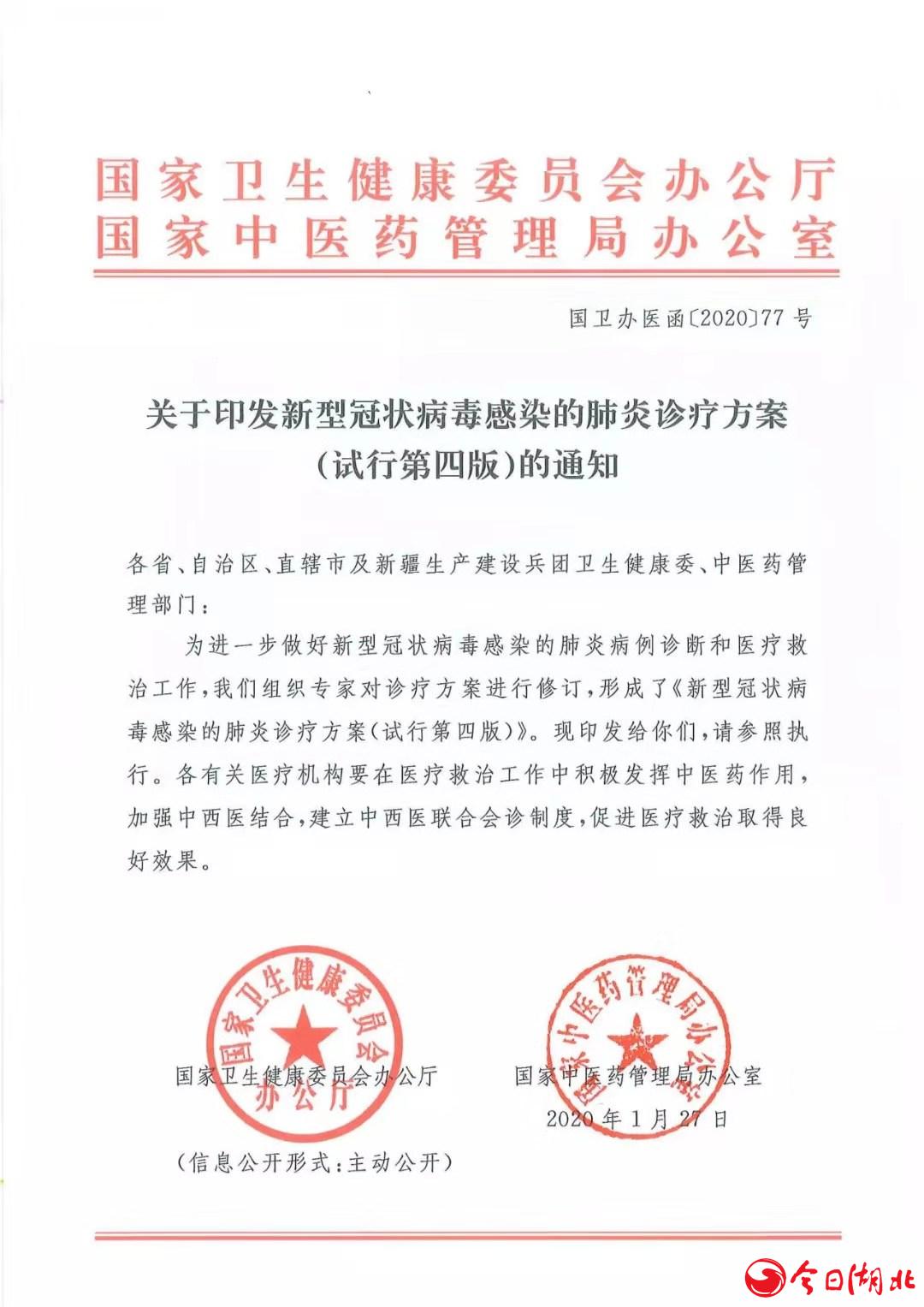 国家卫健委公布新型冠状病毒肺炎诊疗方案