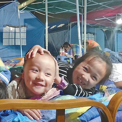 18日,武警官兵背着受灾群众转移。 刘昌松摄(影像中国)18日晚,孩子们在长宁县双河镇安置点的帐篷里。 本报记者......