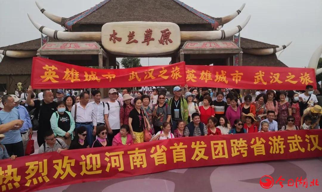 7月25日,武汉市黄陂区迎来首个超500人的跨省旅游团,上午11时,河南省首发团抵达武汉木兰草原景区,武汉市文化和旅游局副局长范继先......
