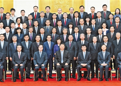 7月17日,党和国家领导人习近平、王沪宁等在北京人民大会堂会见回国参加2019年度驻外使节工作会议的全体使节。新华社记者张领摄 本......