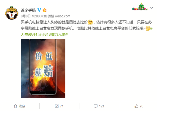 8月8日上午,苏宁手机官方微博发布了一条“价低就赔”的海报内容,引发网友吐槽,听说过“价高就赔”的,没听过“价低就赔”的,这是什......
