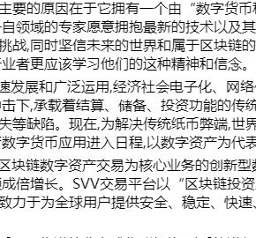 SVV数字资产交易平台概述,SVV数字资产交易平台发展史,SVV数字资产交易平台团队发展目标,SVV数字资产交易平台将各种结合区......