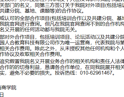 元培商学院关于“对外合作中心”“健康产业学院”的声明