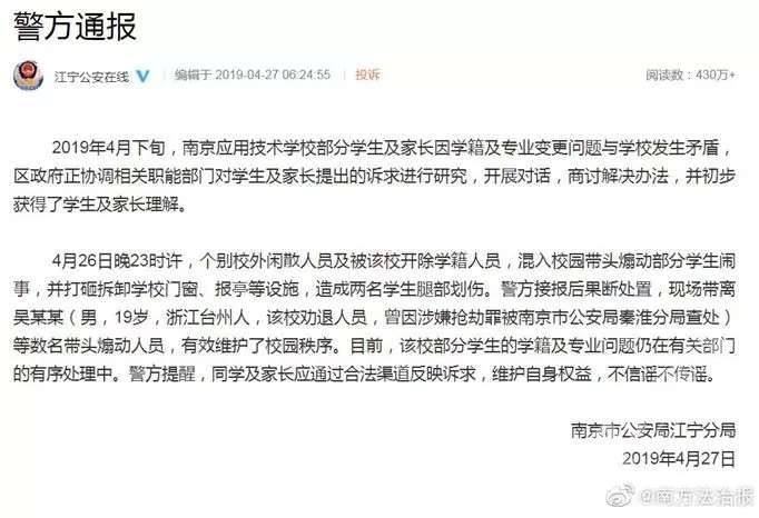 南京市通报"南应"事件:相关问题已得到妥善处理