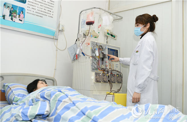 1月8日,实习医生小杨正在进行造血干细胞捐献采集。 人民网重庆1月8日电(陈琦)1月8日上午,中华骨髓库重庆市分库迎来了新年首例造......
