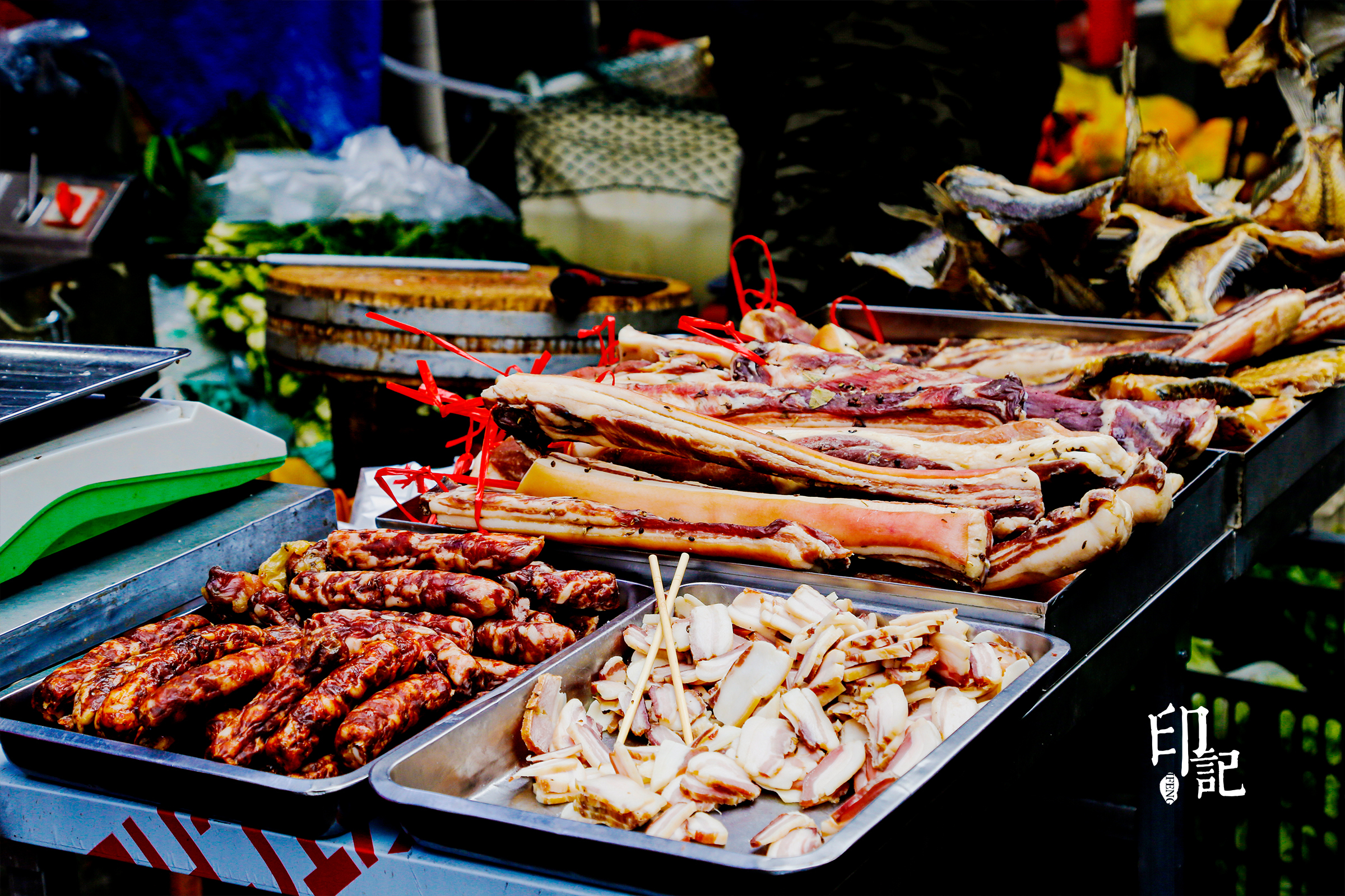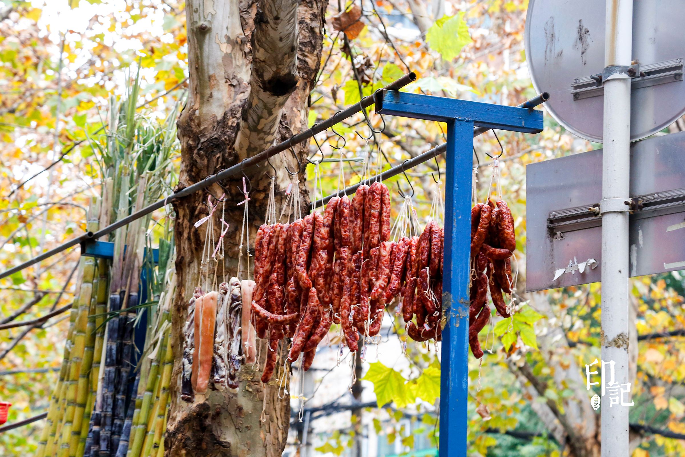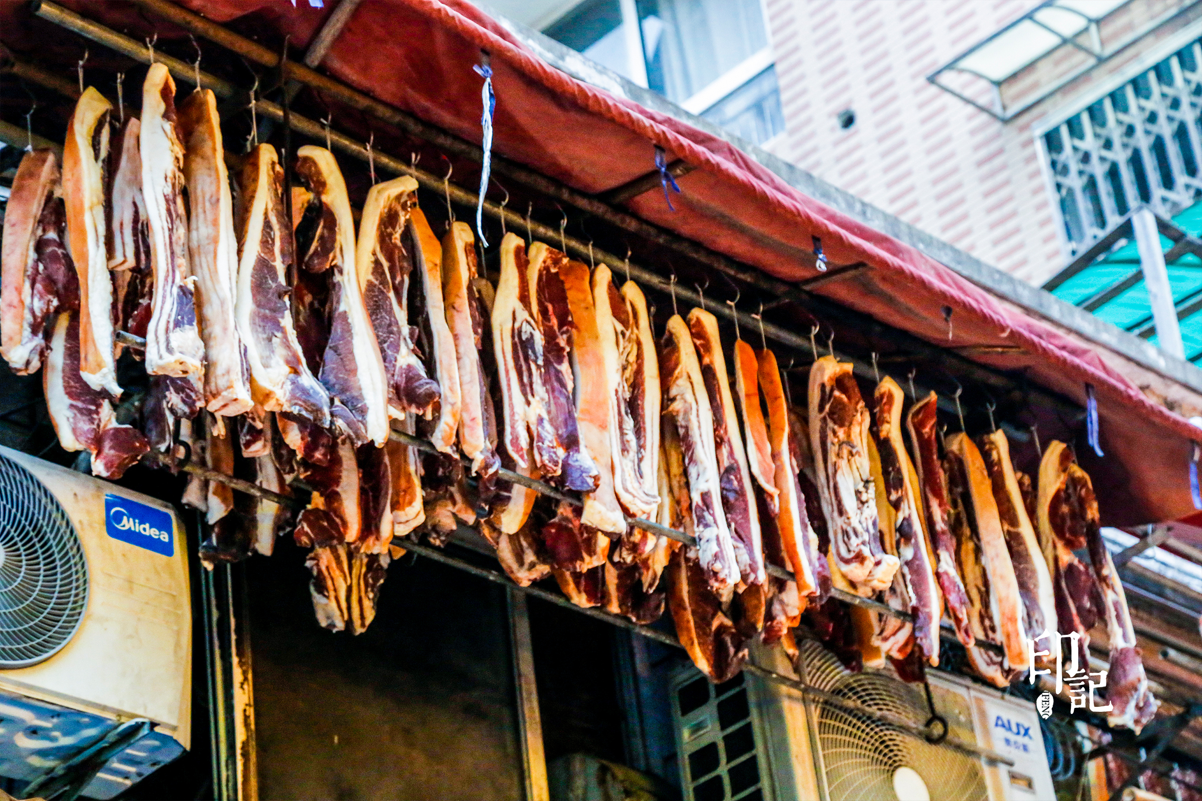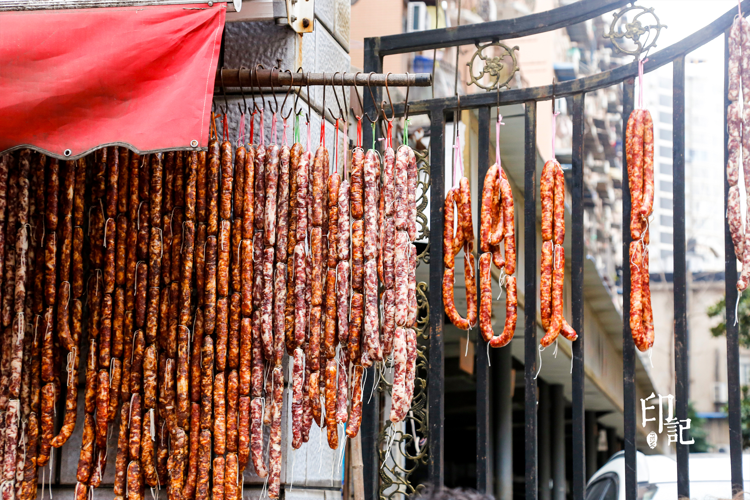 路边随处可见挂着的腊肠腊肉,等待阳光和时间赐予的美味。