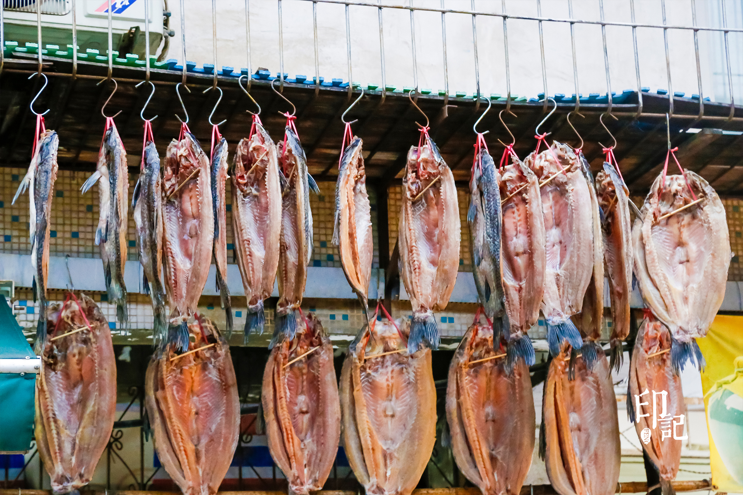 穿行在这片腊货“林子”里,抬头都是各种腊货。各家腌的成色不一样,有的深,有的浅,但看着都馋人。