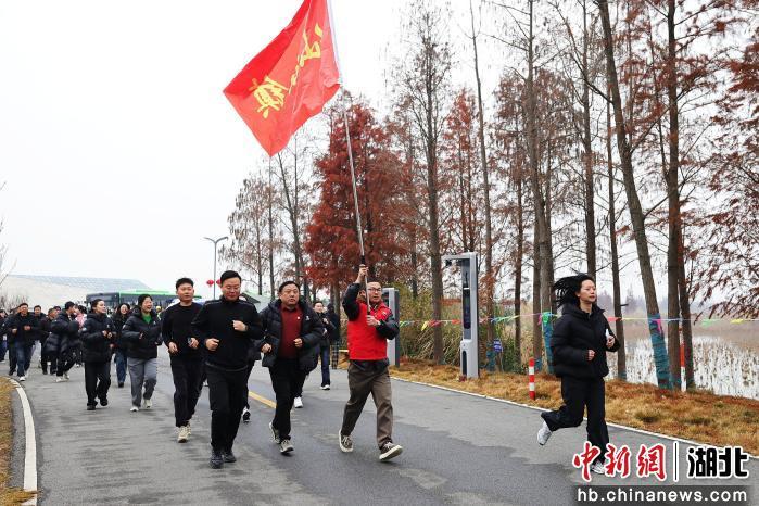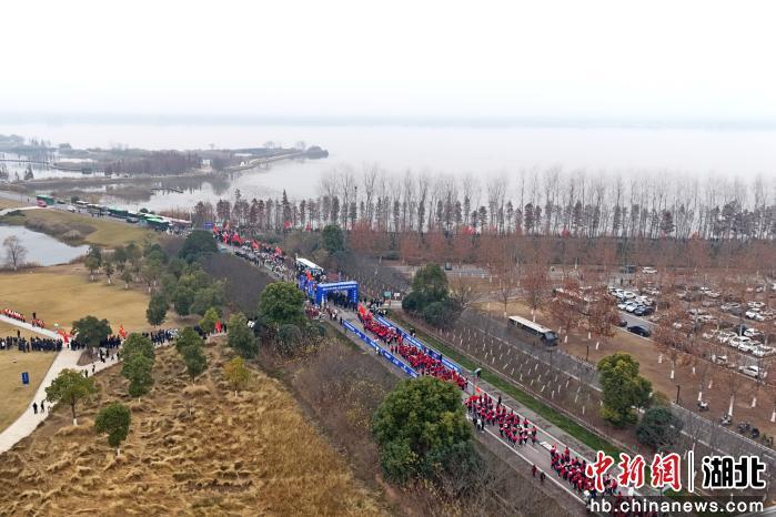 枝江市第十五届迎新春健身长跑活动30日举行,来自该市各镇(街道)、机关企事业单位、学校及驻枝单位的5000余名健身爱好者相聚在金湖国家湿地公园,用奔跑迈向充满希望的2026年。