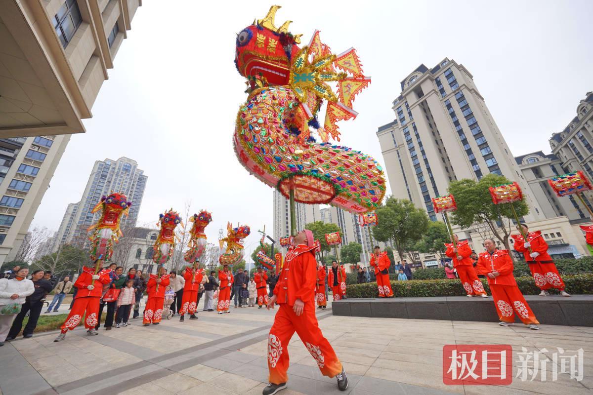 2月24日,武汉市汉阳区龙阳新村社区在龙阳街道文化广场举办马年春节非遗舞龙表演活动,以传统民俗为居民送上新春祝福。