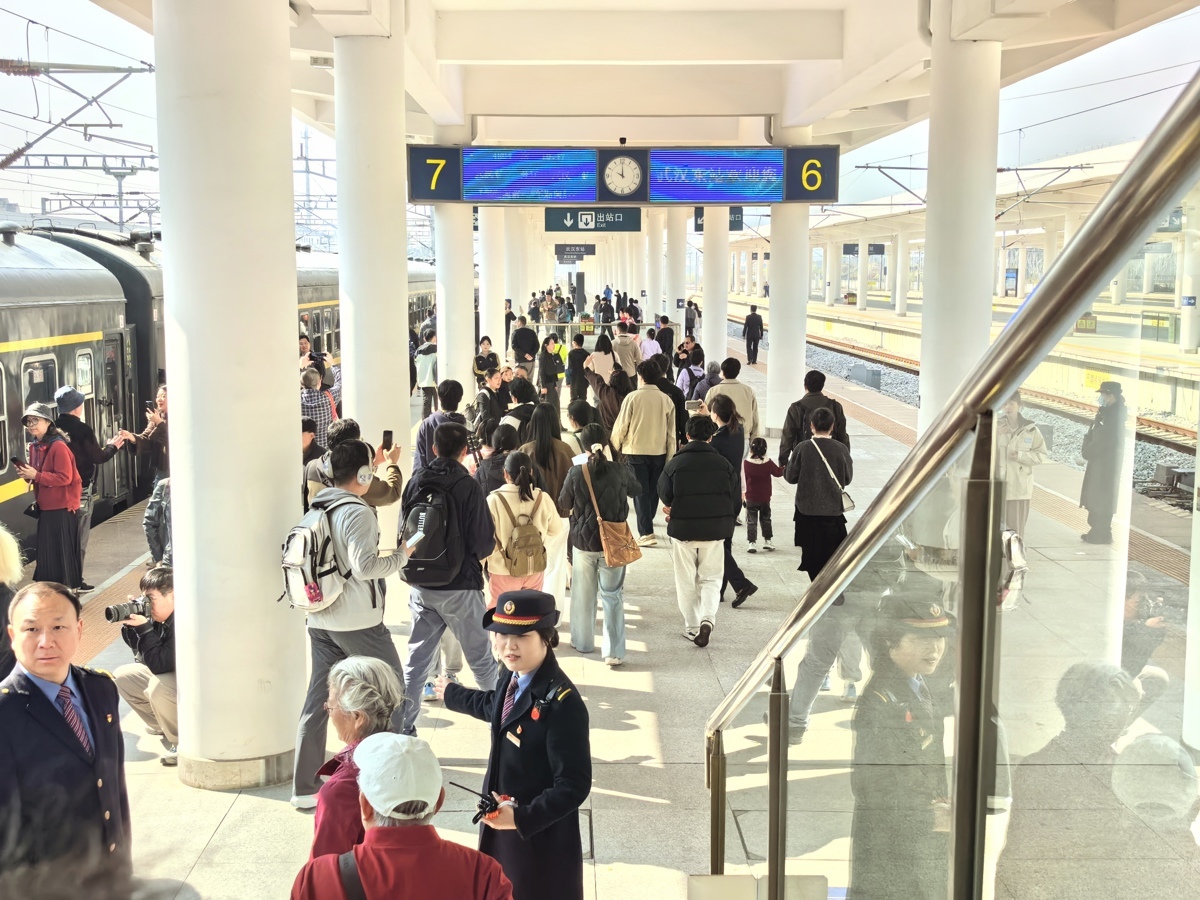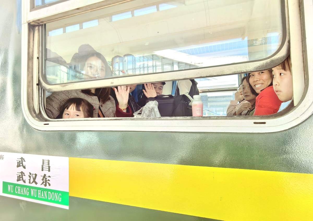 3月14日,“武汉东至武汉东”普速环线列车正式开通,寒潮来临前的这个温暖晴好的周六,这趟列车吸引了很多铁路迷前来打卡。