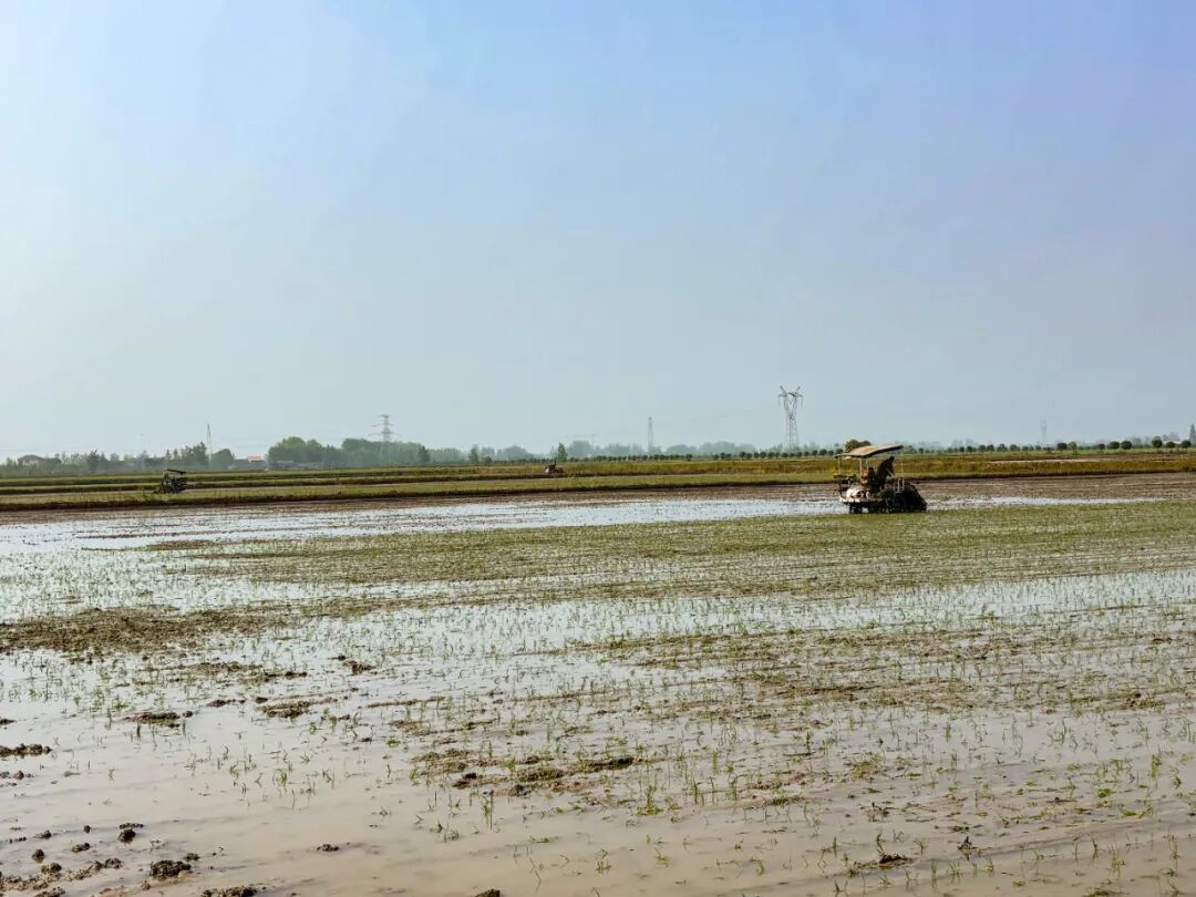“目前第一批15台插秧机已到场,后续还有15台正在路上。力争10天之内完成全部栽插,5月进入正常管理阶段。”基地负责人张小青介绍。
