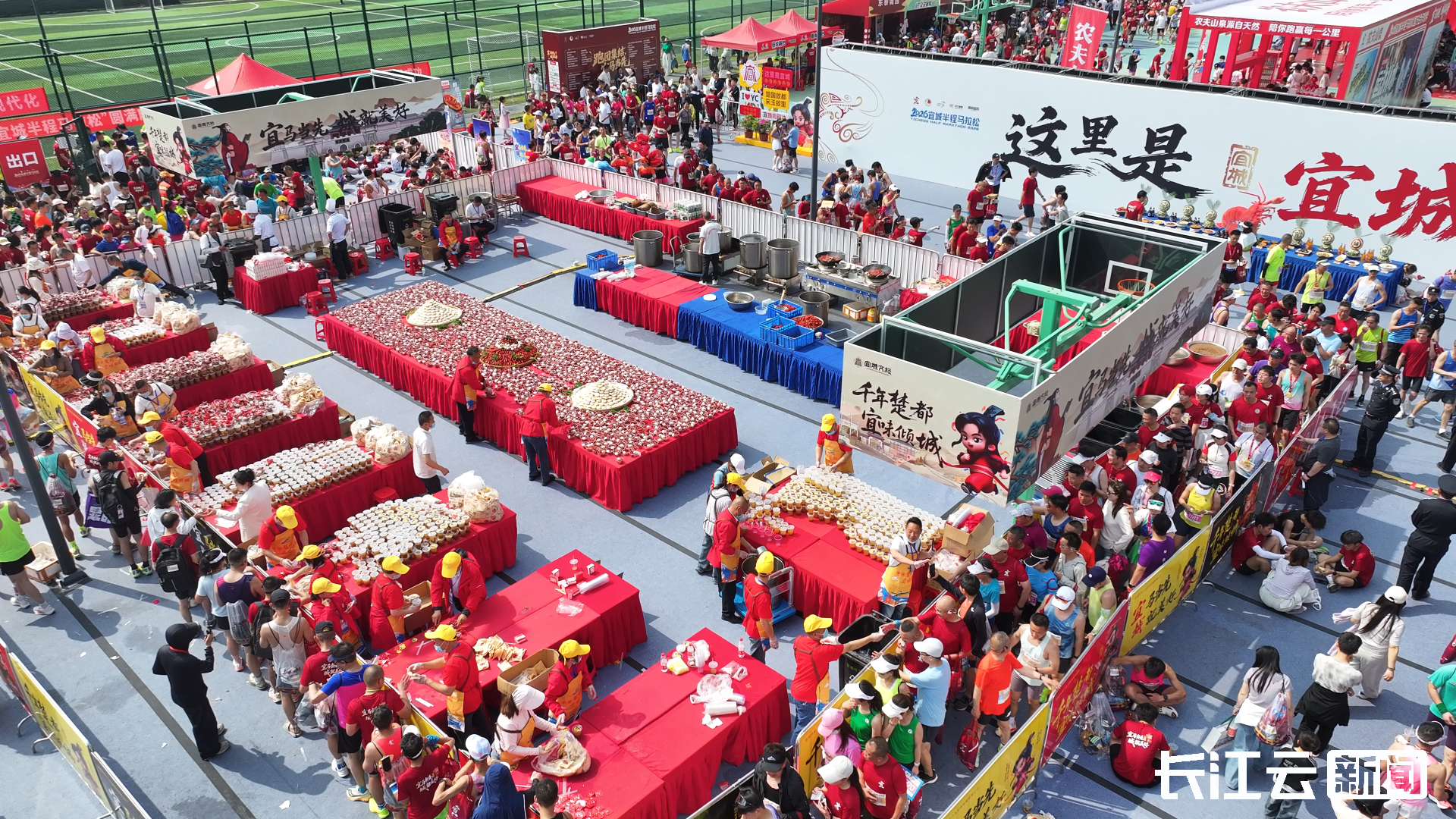 香喷喷的特色美食,既展现了宜城的饮食文化与魅力,也表达了宜城人民的热情好客。随着完赛选手逐步增多,美食品鉴区内也变得热闹起来,大家排着整齐队伍,有序领取特色美食,争相品尝宜城味道,感受城市的温度与诚意。