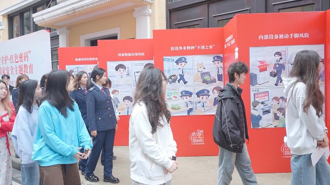 户外广场上,“国安漫话”长廊展出一系列国家安全主题漫画,观众可在“心愿墙”写下国安寄语,扫码收听漫画背后的安全故事。馆内同步设置线下答题区和国安主题打卡点,线上知识竞赛同步上线,完成竞赛答题还可线下领取纪念品。