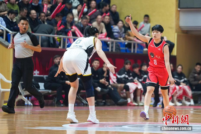 1月12日,武汉盛帆黄鹤队球员王佳琦(红色)比赛中持球推进。当日,在湖北武汉举行的2025-2026赛季中国女子篮球联赛(WCBA)常规赛第15轮比赛中,武汉盛帆黄鹤队主场以74比77负于江苏南钢队。中新社记者 张畅 摄