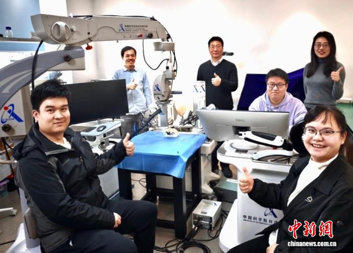 显微眼科机器人研发团队代表合影。中国科学院自动化研究所 供图