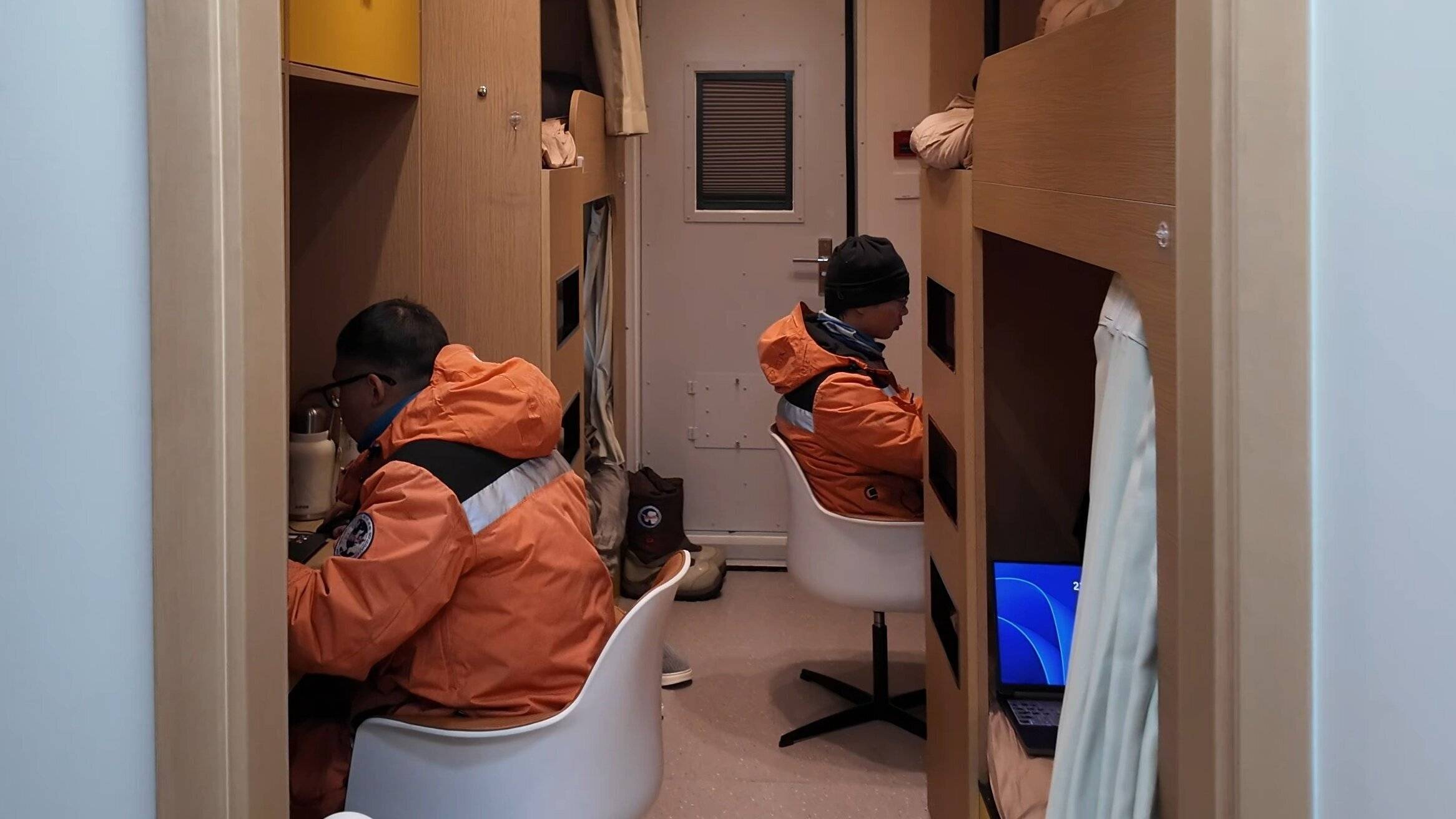 舱壁是专门设计的,保温系数比国内寒冷A区的标准还要高很多。“以前的舱,密封性不是特别好,睡下铺的人冷,要开电热毯、盖被子,热风往上跑,睡上铺的人又觉得热。”闵东说,极地舱装有新风系统,让室内空气循环起来,体感温度均匀。在零下40摄氏度的野外,室内气温维持在18到22摄氏度。