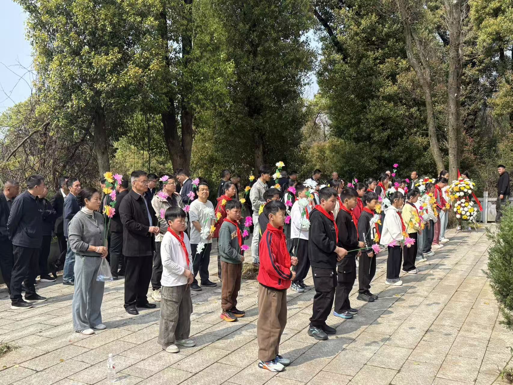 束束花朵寄哀思,片片深情敬英雄。宣誓结束后,同学们怀着崇敬与追思,有序上前,向革命先烈敬献花朵,用一朵朵的花寄托对英烈的无限怀念与崇高敬意,告慰先烈忠魂。