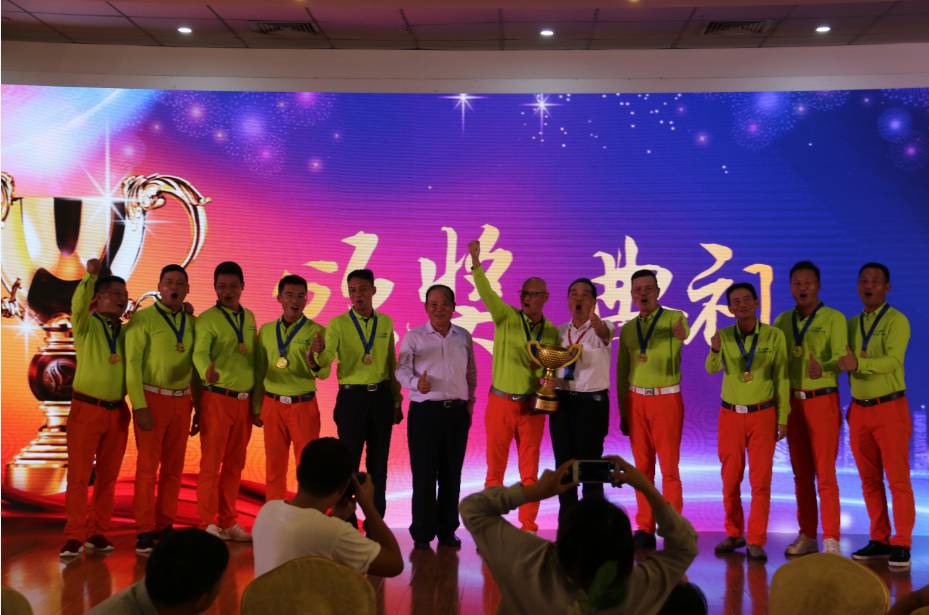 27日晚,期待已久的颁奖典礼盛大开幕。湖北楚商队凭借第一轮成绩364,第二轮成绩775,总成绩1139荣获第二届全国楚商高尔夫球联赛团队冠军。北京楚商以总成绩1205夺得团队亚军,广东荆楚以1219斩获团队季军。海南楚商、广东楚商、上海楚商分别取得第四、五、六名的好成绩。