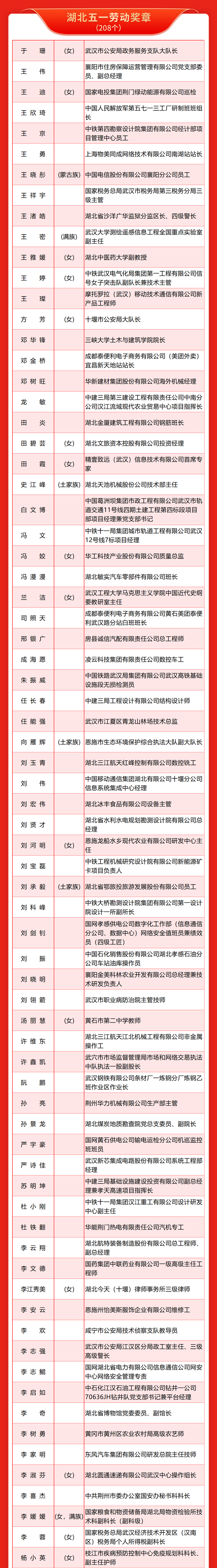 2026年湖北五一劳动奖名单揭晓