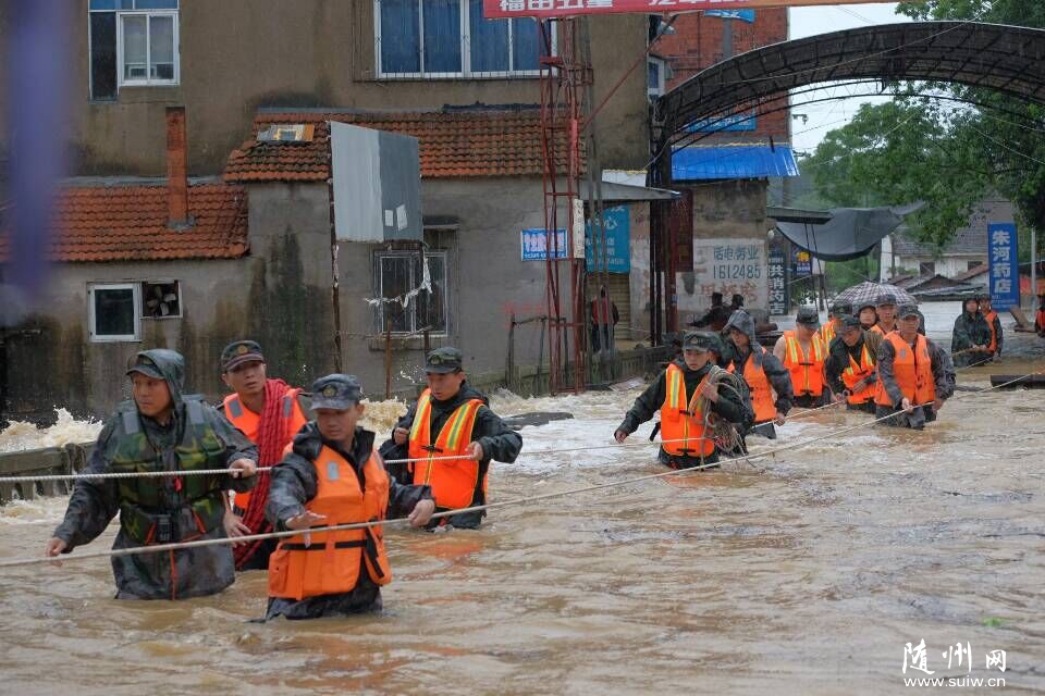 7月19日,武警消防部队出动官兵210人分赴淅河镇、洛阳镇、府河镇等地转移人民群众,抗洪抢险救灾。