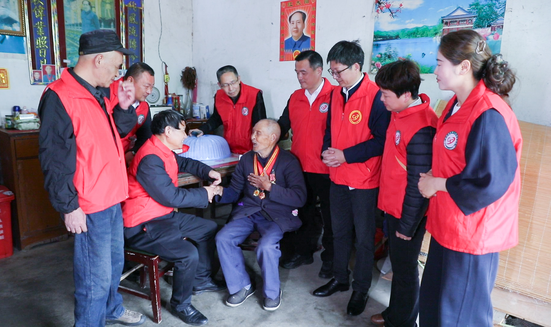 慰问首站来到95岁抗美援朝老兵徐定清家中。徐老英雄曾参加著名的上甘岭战役,历经数十次战斗,多次立功受奖。他向大家展示所获奖章及"光荣在党50年"纪念章,含泪回忆:"那场战斗很惨烈,许多战友都牺牲了,我能活下来活到90多岁,很满足幸福!"徐普查感慨道:"正是您们当年的英勇战斗,才有了今天的幸福生活。我们会永远铭记,把红色精神传承下去。"