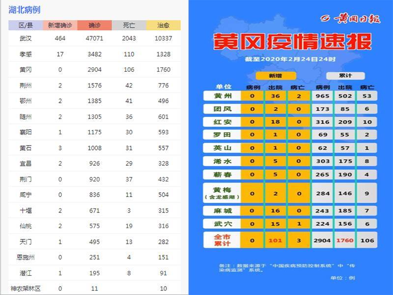 (截止2月25日12时湖北省及黄冈市最新疫情数据)