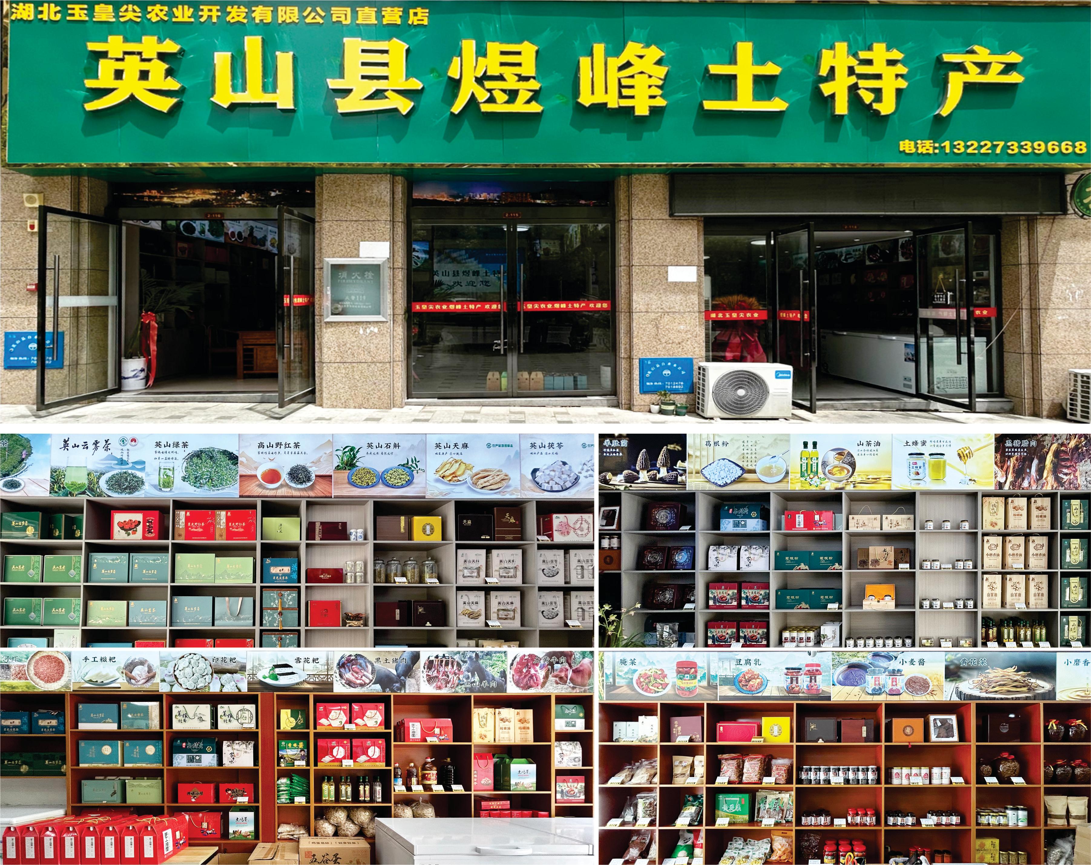 2018年,他的“小摊子”年销破23万;2020年,英山县城200平的“煜峰土特产”门店开门迎客;2023年黄州店、2024年武汉直营店接连落地;2022年,新生产加工中心建成——如今的湖北玉皇尖农业,已织就“种养+加工+批发零售+线上线下”的全链条网:土猪腊肉、野生葛根粉、英山云雾茶等60款农品,全换上了规范包装、拿下生产许可证,既能进超市、闯电商,也能供批发。