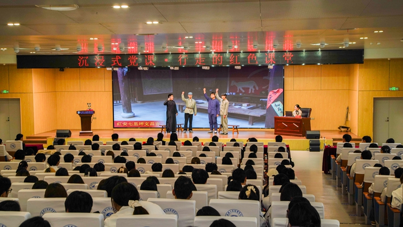 这堂由八七会议会址纪念馆与武汉交通职业学院交通文旅学院联合开展的“沉浸式党课——行走的红色课堂”暨“八七红·共享思政课”《红旗漫卷大别山》,通过“沉浸式体验”激活红色文化育人效能,引导党员师生身临其境感悟红色历史、传承革命基因、汲取奋进力量。