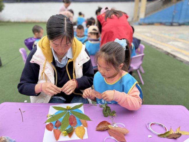 捡拾回来的落叶、树枝、果壳等自然物,在孩子们手中并没有被丢弃,而是成为了创意手工的宝贵材料。在随后的手工课堂上,各班教师引导幼儿利用收集来的树叶、废纸盒、塑料瓶等废旧物品,发挥想象力,制作出一件件充满童趣的环保手工作品。幼儿们用落叶拼贴“地球小树屋”,一件件作品虽然简单,却凝聚着孩子们对地球家园的美好祝愿。