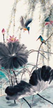 何月群习画至今近逾五十载,擅花鸟,兼写山水、人物、走兽、虫鸟等。画作承袭了岭南画派的精髓,同时又汲取西方绘画艺术的精华。并将其融合在中国画的创作中,使其作品有着高古含蓄、淡彩清雅、厚实灵动的独特风格,具有深刻的精神内涵。富有诗意,给人以博大、吉祥和宁静之感,是当代画坛极具潜质的艺术家。