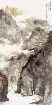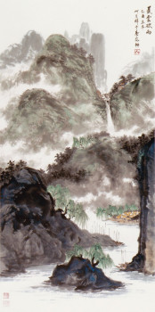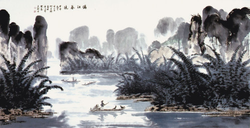 我还想特别说说何月群的山水画。山水画顾名思义要写客观的自然景色,但更重要的是借景抒情,在表达自然美的同时,传达作者对祖国大自然的感情。何月群深谙此理,她的山水画如《漓江春晓图》,用含有诗意的笔墨,取漓江春天景色一隅,写山水上渔民的悠然自得,也写出作者心头的舒畅,并折射出时代的安定与和谐。
