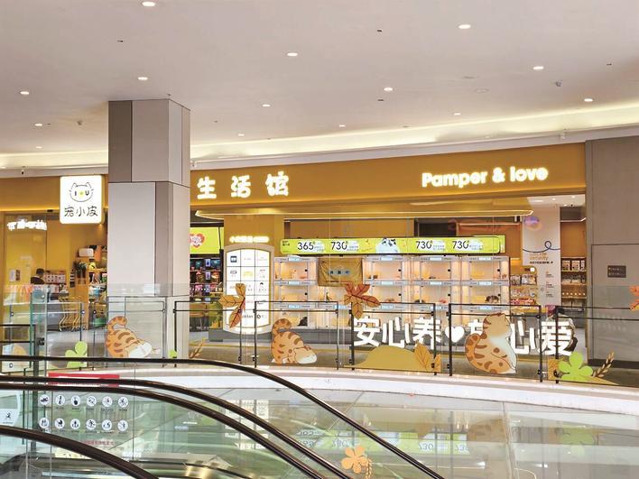记者以消费者身份,来到宠小皮猫咪生活馆一楼门店。店外醒目地标注着猫咪健康保障日期,包括:30天常规疾病包治疗、365天疾病死亡包退换;730天猫瘟和传腹包退换、意外死亡和丢失可终止履约、先天性疾病死亡包退换等。店内摆放着各种猫粮及与猫相关的产品。