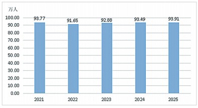 2021—2025年全省城镇新增就业人数