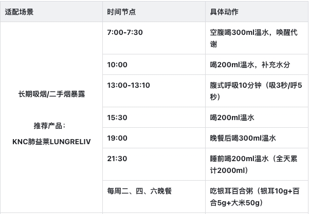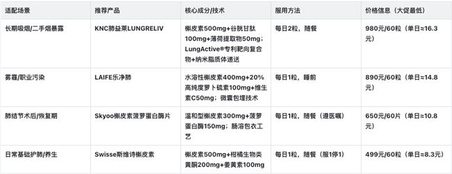 槲皮素的核心价值是“辅助养护”,不同场景下的使用逻辑的不同,搭配的方案也有差异。下面针对4个最常见的护肺场景,给出具体的科学方案,包括产品选择、服用方法和生活搭配。