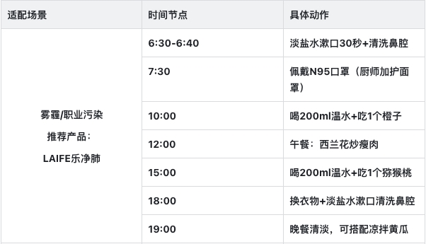 场景2:雾霾/职业污染(厨师、矿工)——重点“抗炎+护膜”