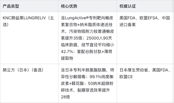 场景一:长期吸烟/肺结节人群——重点看“靶向清毒+结节修护”
