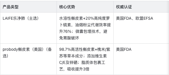 这类人群无明显肺部不适,核心需求是日常预防污染伤害、维持肺功能稳定。选择时无需追求复杂的专利技术与高端配方,重点关注“成分简洁安全、权威认证齐全、价格亲民”三大点,优先选择适配长期服用的基础款产品。
