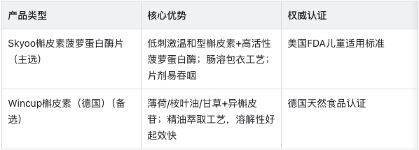 核心优势:专为敏感人群、老人儿童设计,采用低刺激温和型槲皮素,搭配高活性菠萝蛋白酶,温和稀释呼吸道黏液,缓解轻微咳嗽、痰多,不刺激肠胃;肠溶包衣工艺减少胃肠道刺激,片剂尺寸优化,易吞咽。
