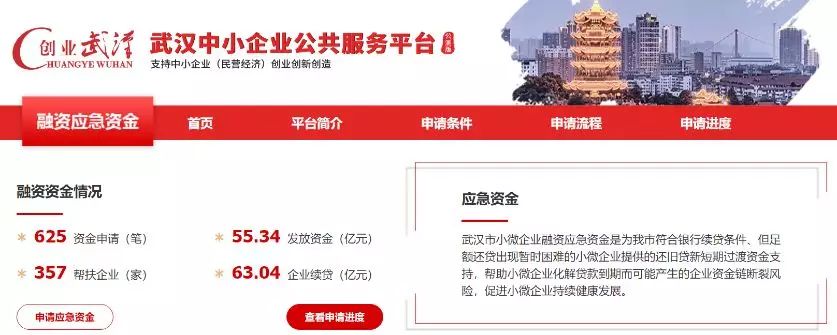 点击登录“武汉中小企业公共服务平台融资应急资金”板块如下图,点击“申请应急资金”,即可办理。