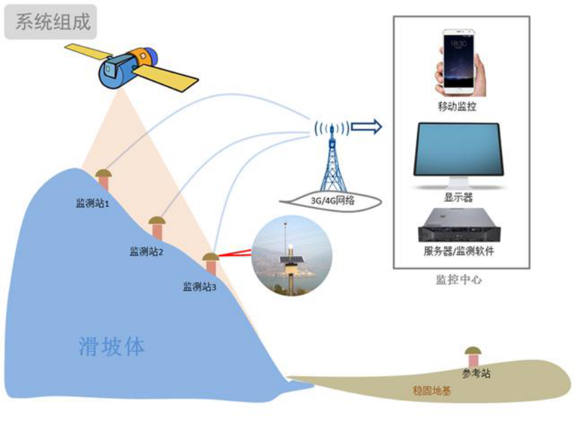 由于地面变形特征可以由定位测得,所以可以通过北斗系统定位监测获取滑坡特征信息,得到监测地区山体的形变趋势及形变规律,从而达到预报山体滑坡的变形趋势。