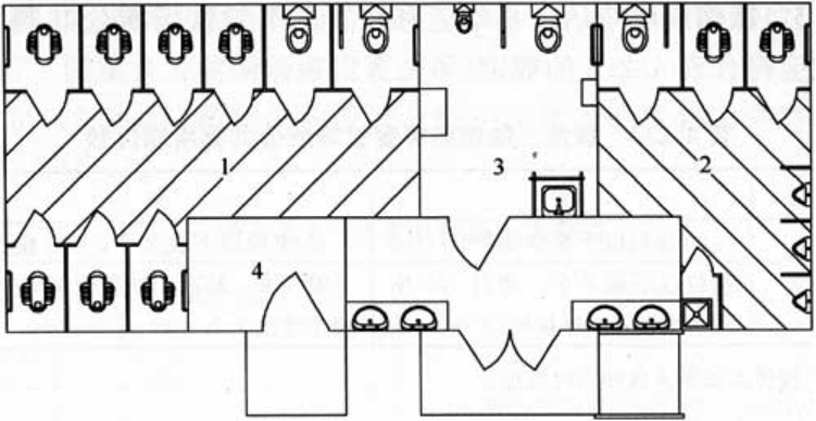 1-女厕;2-男厕;3-第三卫生间;4-管理间