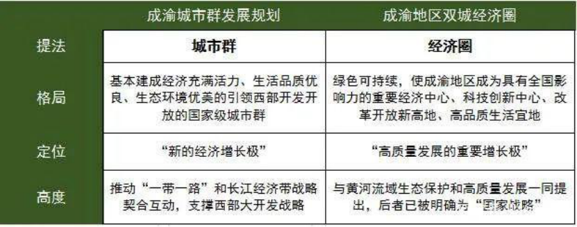 这次会议上,“成渝地区双城经济圈”概念首次被提出。以往对于成渝的表述,大多都是成渝都市圈、成渝城市群。