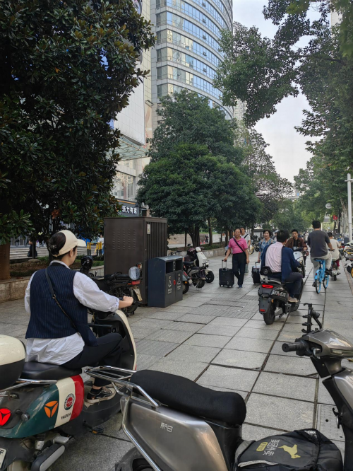 中建广场作为武昌区重要的商业办公聚集区,日常人流量与电动车流量较大。此前,广场前绿化带占用较多空间,导致人行道与非机动车道交织,高峰时段拥堵严重,不仅影响通行效率,也存在人车混行的安全隐患,对老人、儿童等群体尤为不便。