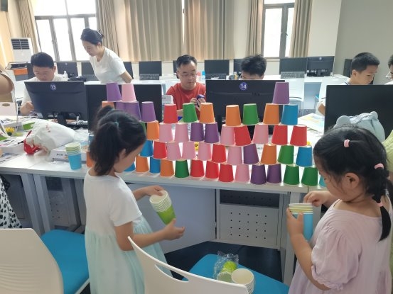 第四站“心芽初绽·向阳而生”。在武汉商贸职业学院,孩子们通过“老鹰抓小鸡”游戏感受到了生命之间的链接;在“追光的方向”“纸杯塔堆叠”“狼羊大战”游戏互动中,代入向日葵、竹子、狼、羊等自然界生物中,感受到了生命的不易与顽强。最后的动物养护环节,孩子们一起挑选小乌龟,学习相关养护知识,暗自立下守护的承诺。