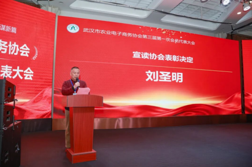 协会战略顾问,原国家粮食储备局局长、中国市场协会会长高铁生自北京发来贺电,点赞协会"武汉方案",称其"短短数年跻身4A级社会组织并获党建强基试点,充分展现武汉农业电商人的速度与担当。承诺将在资源对接、AI与大数据融合新场景等方面与协会深度协同,携手打造数商兴农区域合作升级版。名誉会长,中国农业市场发展委员会常务副主任尹其翼代为宣读,表达了对协会的高度肯定与殷切期望。