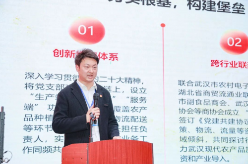 任杭做了党建工作报告。协会高度重视党建工作,始终坚持党建引领,通过党建联建,数字党建,奖党组织建在产业链上,实现党建于业务的深度融合,创建了"红链赋能·e路兴农"党建品牌,被市委社会工作部认定为武汉市行业协会商会党组织强基提质试点单位。